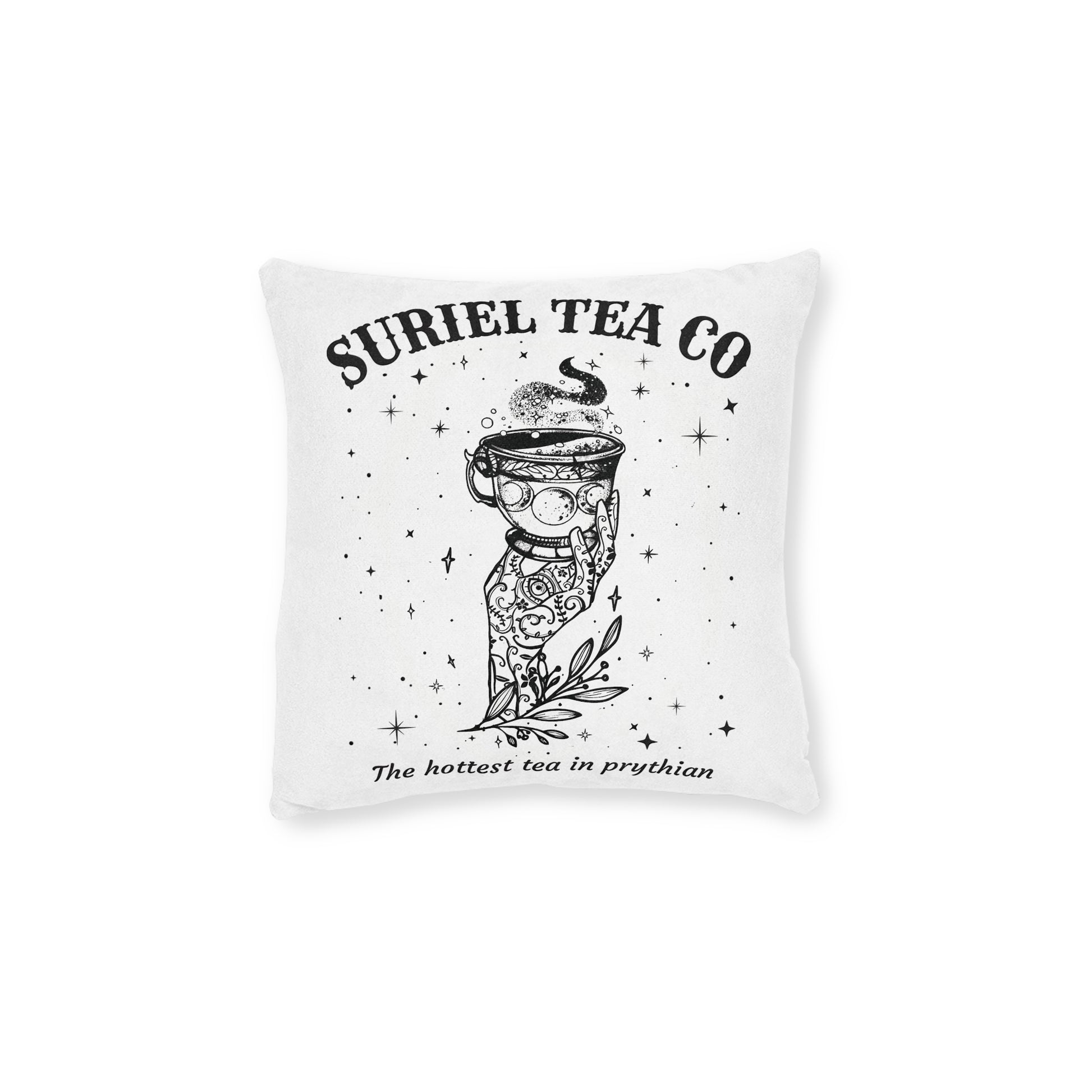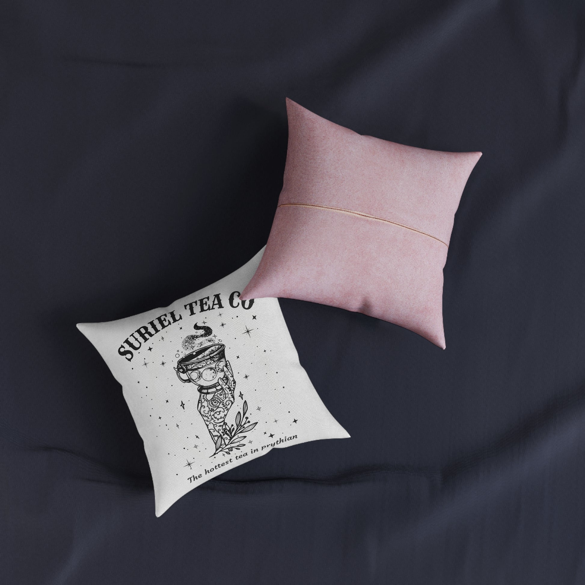 Cozy Decorative Suriel Tea Co Pillow - Pink Back, Cute Home Decor, Gift for Tea Lovers, Boho Style Cushion, Relaxation Accent